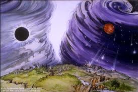 Rev 6: 12-17 There was a great earthquake. The sun turned black like sackcloth made of goat hair, the whole moon turned blood red, and the stars in the sky fell to earth, as figs drop from a fig tree when shaken by a strong wind. The heavens receded like a scroll being rolled up, and every mountain and island was removed from its place. Then the kings of the earth, the princes, the generals, the rich, the mighty, and everyone else, both slave and free, hid in caves and among the rocks of the mountains. They called to the mountains and the rocks, "Fall on us and hide us from the face of him who sits on the throne and from the wrath of the Lamb! For the great day of their wrath has come, and who can withstand it?"