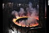 - fiery disc being forged and raised up